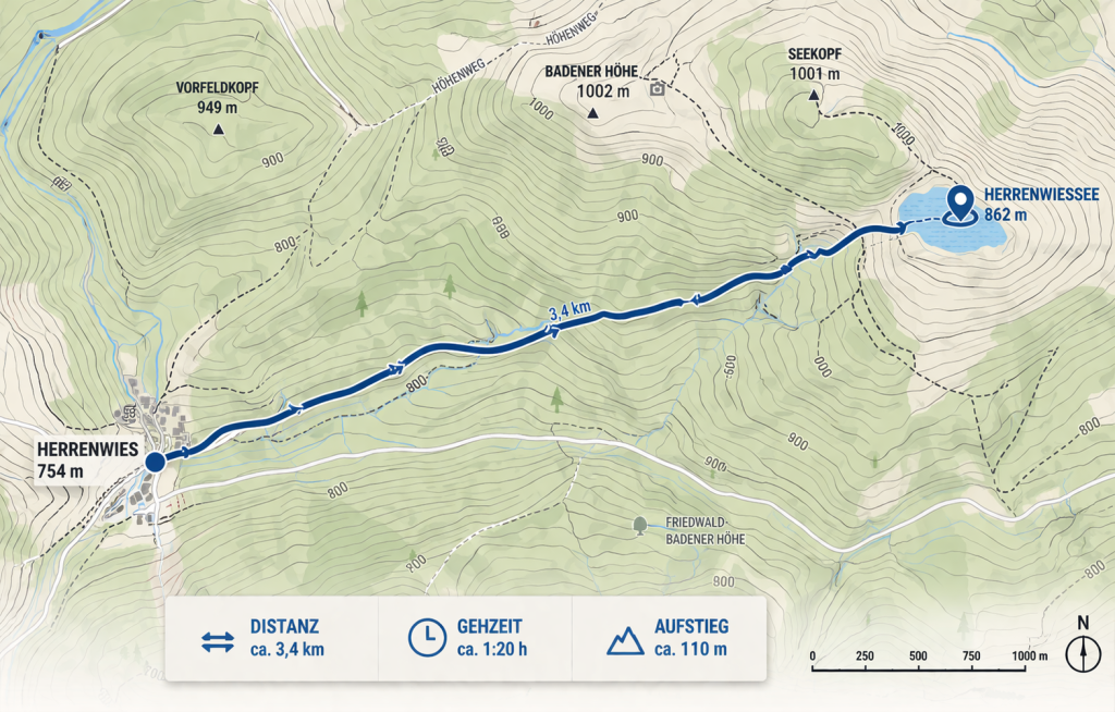 Das sind keine festen Wege, sondern typische Routen, die Tiere im Raum zwischen Herrenwies und Herrenwiessee immer wieder nutzen – geprägt durch Gelände, Deckung und Wasser.